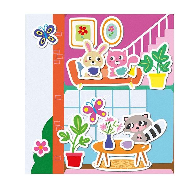 Dodává se s nálepkami zvířat, nábytku a dekorativních prvků. Podporuje kreativitu a představivost prostřednictvím přizpůsobitelných návrhů.