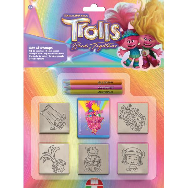 Razítkový set – 5 razítka + 3 barvičky – Trolls