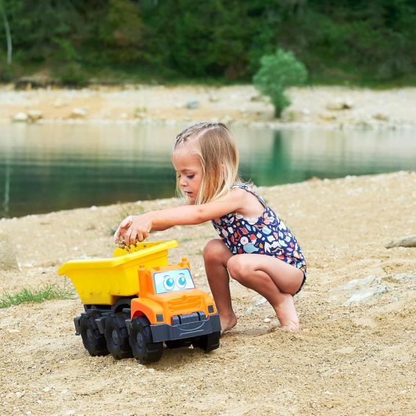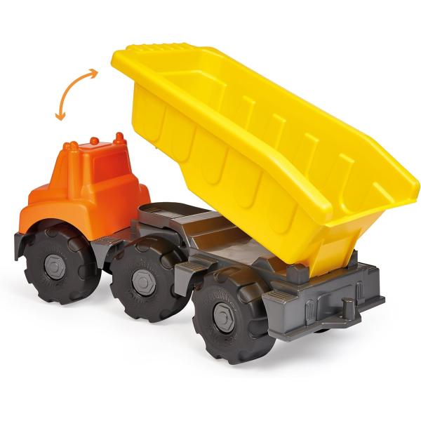 Tento nákladní automobil s vyklápěcí korbou může převážet různé předměty, aby usnadnil zásobování stavebním materiálem.