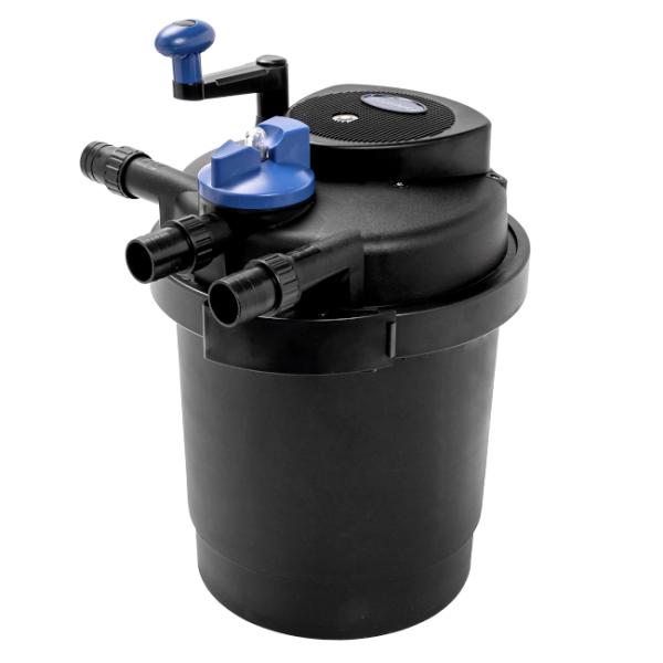 Ve srovnání s biologickými filtry jsou tlakové filtry zcela uzavřené a můžete je s větším klidem nechat zapnuté, protože nehrozí riziko přetečení. Umožňuje také umístění pod hladinu vody. Model 2500 nabízí: