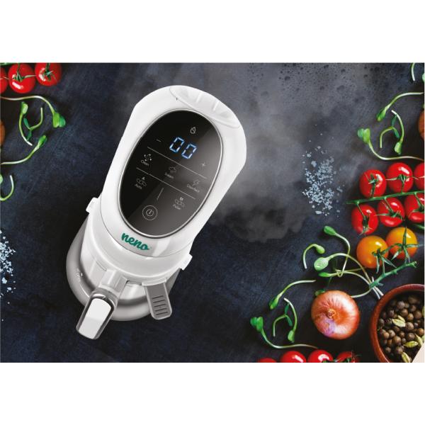 Mixování- Neno Cibo disponuje funkcemi mixování a pulzování, díky kterým si můžete nastavit výkon mixování podle svých preferencí a zvolit pulzní nebo mixovací funkce, abyste mohli úspěšně mixovat potraviny do konzistence podle vlastního výběru.