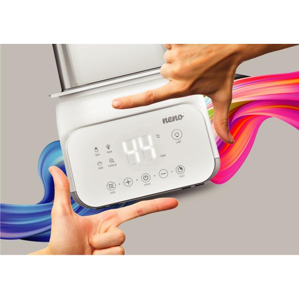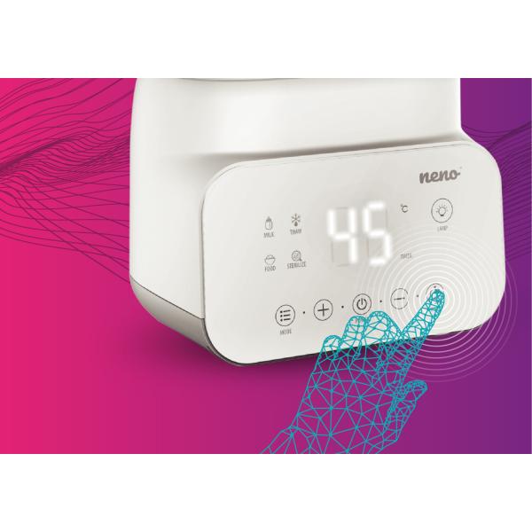 Neno Vita je multifunkční přístroj, který sterilizuje, ohřívá mléko, ohřívá jídlo, udržuje teplotu a rozmrazuje. Kromě toho má moderní a minimalistický design, přehledný LCD displej a velká navigační tlačítka, díky nimž se jednoduše používá.