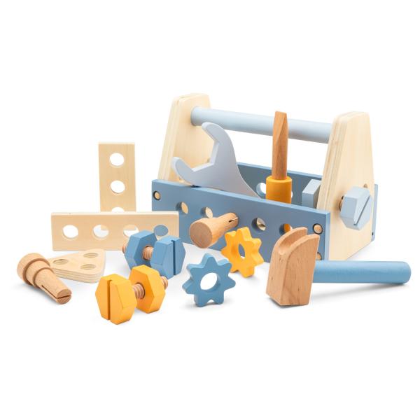 Dřevěná sada nářadí pro malé domácí kutily od 3 let je ideální hračkou, která spojuje zábavu a učení.