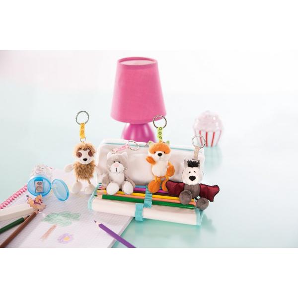 Nadýchaný měkký plyšový přívěsek vybavený pevným kovovým kroužkem, který drží klíče pohromadě nebo je skutečným poutačem jako ozdobný prvek batohu nebo školní tašky.