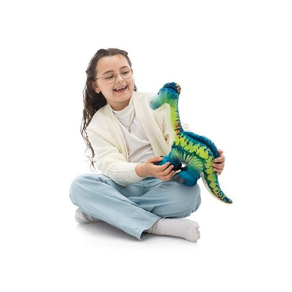 Přátelský dinosaurus Snackilus s dlouhým krkem z oblíbené kolekce NICI Dino je skutečnou nezbytností pro každého fanouška dinosaurů. Svým barevným designem Snackilus okamžitě upoutá pozornost. Jeho tělo z hebkého plyše svádí k mazlení a poskytuje nezapomenutelné chvíle pohody. Snackilus stojí vzpřímeně a hrdě ukazuje svůj dlouhý krk, což z něj dělá jedinečného kamaráda na hraní. Je to perfektní dárek pro dino fanoušky všech věkových kategorií a zaručeně se stane novým oblíbeným společníkem.