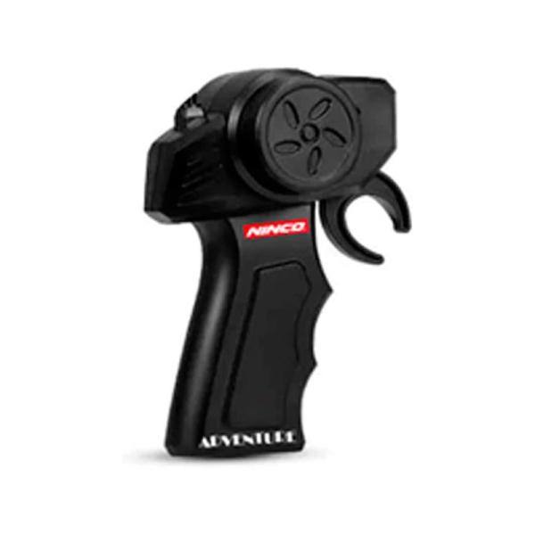 O řízení modelu se stará volantový vysílač, který dobře padne do ruky. Vysílač pracuje v pásmu 2,4Ghz, což zajišťuje spolehlivý přenos signálu bez interferencí a výpadků. Nemusíte se už bát že zlomíte anténu, ta je integrovaná v těle vysílače.