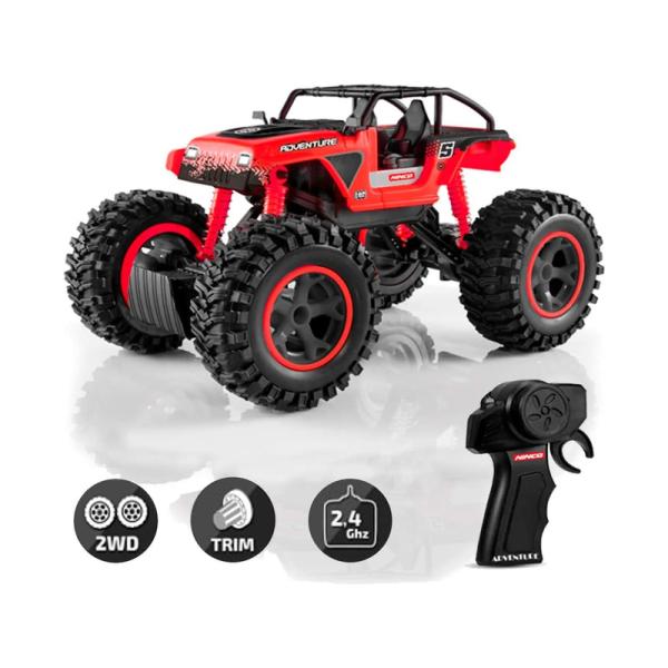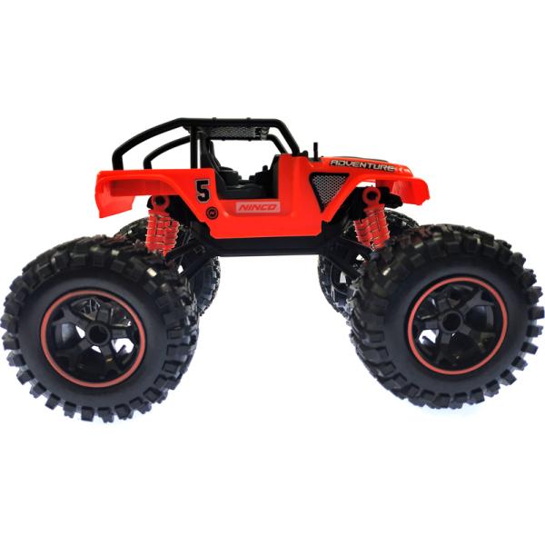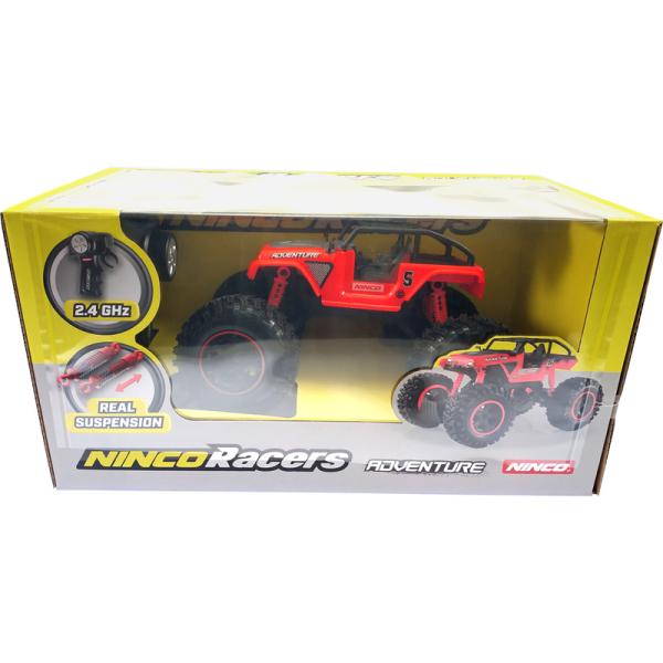 Více informací o rozdílech mezi RC modely a RC hračkami naleznete zde.Obsah balenia:Balení obsahuje kompletně sestavené RC auto NINCORACERS Adventure 2.4GHz RTR, na dálkové ovládání v měřítku 1:16, s pohonem zadních kol, volantový vysílač 2,4GHz. Španělský, anglický, portugalský, německý, francouzský, italský a český manuál. Nutno dokoupit 3x AA alkalické baterie pro auto a 2x AAA pro vysílač.Odporúčame dokúpiť:Pro zprovoznění modelu je nutné dokoupit 3x AA EM-B1320 – baterie pro auto a 2x AAA EM-B1310 pro vysílač.