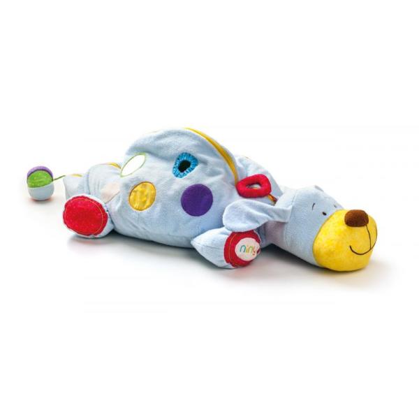 Velký plyšový Kamarádky pejsek “ IPO “ s 60ti míčky je uklidňující hračka z kolekce Niny. V jeho těle je uloženo 60 barevných plastových míčků. Ocásek je vyroben z látkového míčku, který vydává zvonivý zvuk. Na těle pejska jsou hrací prvky, vkládací okénka, zrcátko. ouška šustí. Všechny použité materiály jsou příjemné na dotek a nabízí dětem ničím nerušený čas relaxace. Design německé návrhářky Britta Hurter. Rozměr: 124 cm (šířka) Věk: 6m +