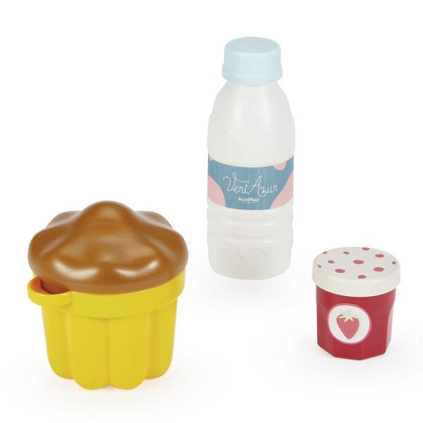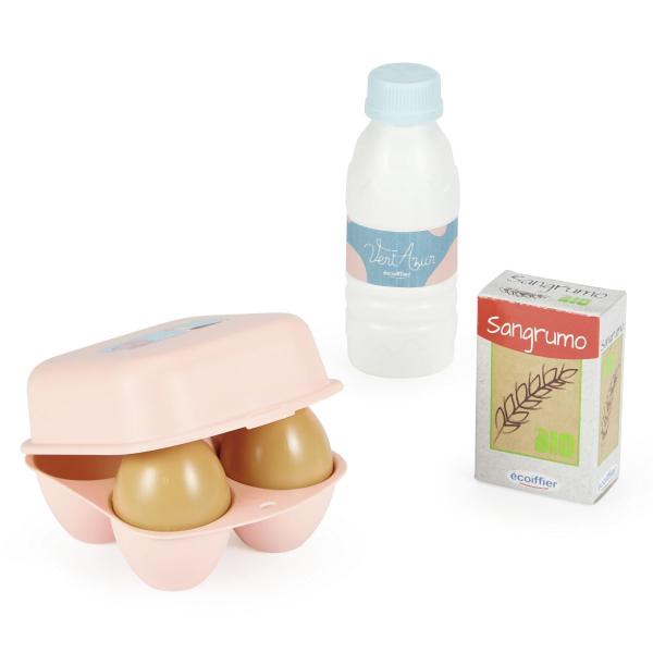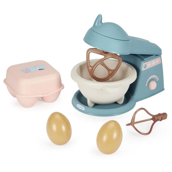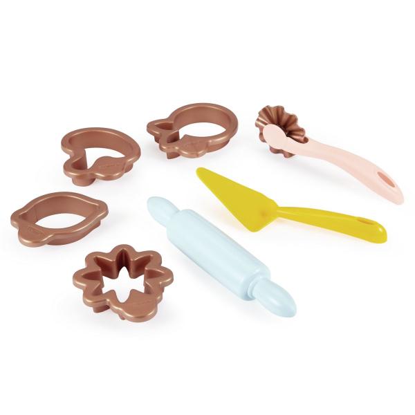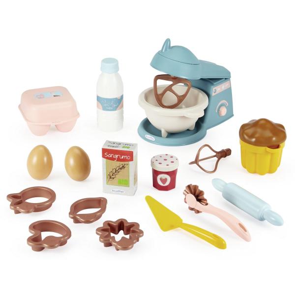 Nyní obsahuje všechno potřebné pro malé cukráře. Šlehač s 2 vyměnitelnými nástavci, forma a vykrajovače na pečení, váleček, řezací kolo, vejce a další modely potravin.