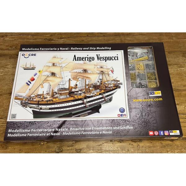 Charakteristika:Stavebnice neplovoucího modelu lodi Amerigo Vespucci s plachtami od značky OCCRE v měřítku 1:100. Propracovaný model jedné z nejkrásnějších plachetnic. Stavba převážně ze dřeva, plošné díly jsou přesně řezané laserem. Plaňkování je dvojité. Pro vystavení lodi poslouží stojánek s kovovou odlévanou plaketou s názvem lodi. Na modelu je velké množství detailů, včetně několika menších člunů. Pro vyvázání lanoví jsou v balení různé provázky. Ušité plachty jsou obsahem balení. Výhodou stavebnice je špičkové balení s dobře ochráněnými díly, obrázkový návod krok po kroku, sada výkresů a videotutoriály.