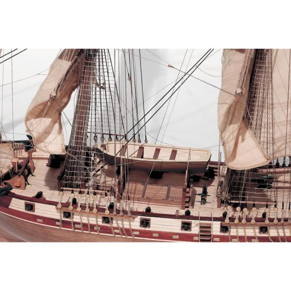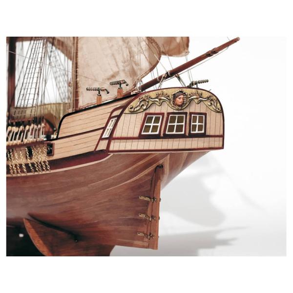 Charakteristika:Stavebnice neplovoucího modelu lodi Corsair v měřítku 1:80 od značky OCCRE. Obchodní loď, která padla do rukou korzárům a byla vybavena 16 děly a 4 falconety. Stavba převážně ze dřeva, plošné díly jsou přesně řezané laserem. Trup je klasický žebrovaný. Plaňkování je dvojité. Pro vystavení lodi poslouží stojánek s kovovou odlévanou plaketou s názvem lodi. Bohaté zdobení lodi je ve formě kovových odlitků, jako jsou děla, kotva, člun, kormidlo a okrasné prvky. Pro vyvázání lanoví jsou v balení různé provázky. Ušité plachty zjednodušují stavbu. Výhodou stavebnice je špičkové balení s dobře ochráněnými díly, obrázkový návod krok po kroku a sada výkresů. Vhodné pro ambiciózní mírně pokročilé modeláře.