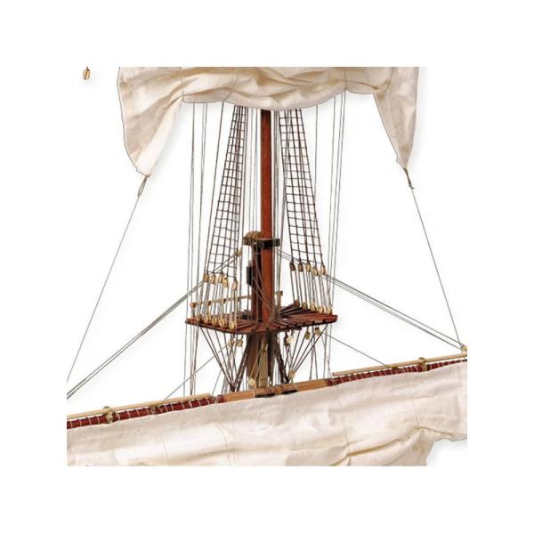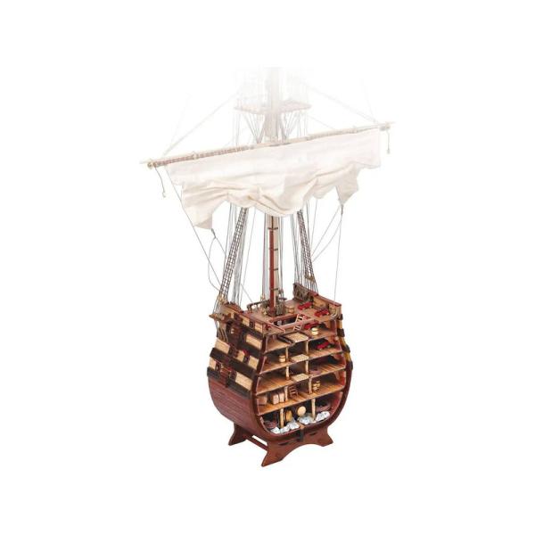 Příčný řez hlavním stěžněm mocné lodi Santísima Trinidad. Loď Santísima Trinidad byla postavena v Havaně a spuštěna na vodu 2. března 1769. Byla největší válečnou lodí 18. století, vyzbrojenou 130 děly. Po účasti v námořních taženích konce 18. a počátku 19. století se naposledy zapojila do bitvy u Trafalgaru pod praporem kontradmirála Cisnerose, kde byla britskou flotilou zbavena stěžňů.
