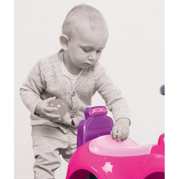 Růžové odrážedlo s jednorožcem je pomocníkem při prvních krůčcích vašeho dítěte. Poskytuje mu dostatečnou oporu a pomáhá naučit udržet rovnováhu. Jízdou na odrážedle si dítě také buduje svalovou hmotu. Vyrobeno z kvalitního a odolného materiálu. Na řídítkách je houkačka se zvukovým efektem. Pod sedačkou naleznete úložný prostor. Dítě se může pohodlně opřít o zádové opěradlo nebo pomocí něj celé autíčko tlačit. Rozměr: 27×63,5x39cm. Věk: 12m+.