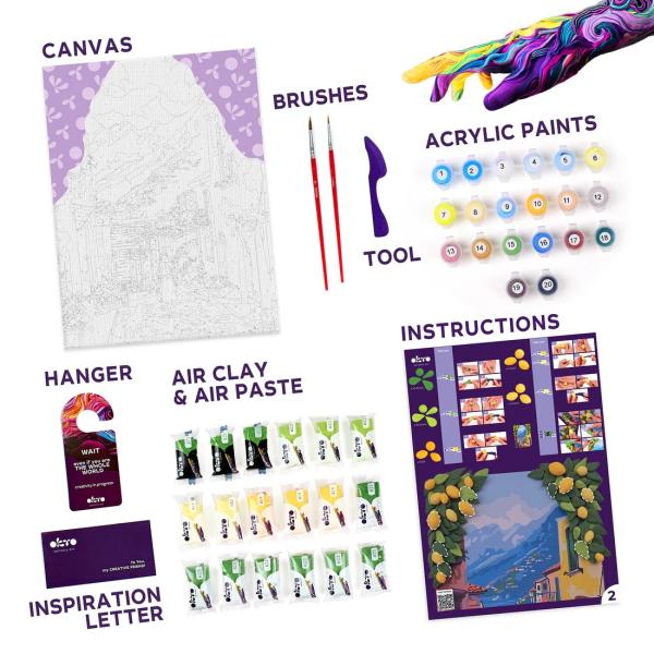 OKTO Malba a 3D modelování obraz „Lemon Weekend“. Velikost plátna 30×40 cm. Vybarvěte obrázek podle čísel a vytvarujte 3D prvek obrazu.