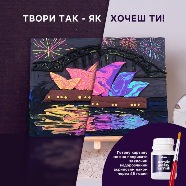 Pozor! Sada pro kreativitu a dekoraci. Sada není hračka. Bezpečná pro zdraví, netoxická. Nespůsobuje alergie. Na čerstvém vzduchu směs částečně ztrácí své vlastnosti do 10 minut, proto směs nenechávejte na čerstvém vzduchu. Doporučujeme nechat hotový obraz schnout 48 hodin, po zaschnutí je možné obraz přikrýt ochranným lakem. Doporučujeme lesklý nebo matný akrylový vodou ředitelný lak. Hotový obraz je odolný vůči deformaci, lehký a hedvábný na dotyk.