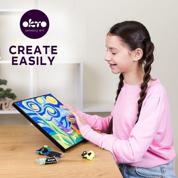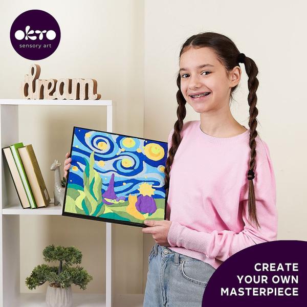 Jedinečný a nezapomenutelný dárek vytvořený s cílem přimět vás zastavit se a najít si čas pro sebe v bláznivém víru každodenních událostí. Ponořte se do nových hmatových vjemů, vytvořte si vlastní verzi slavného mistrovského díla, vytesaného konečky prstů. Stačí se dotknout. Sada obsahuje vše, co potřebujete k vytvoření obrazu.