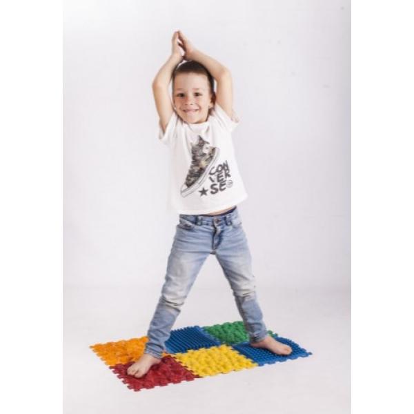 Podložka sestává z 6 hádanek. Materiál: PVC (bezpečný, hypoalergenní, bez škodlivých příměsí) Velikost modulu: 26×26 cm K čemu se používají ortopedické masážní podložky: pro masáže, trénink a posilování chodidel; k prevenci plochých nohou, valgozity a varózní deformity; na rozvoj smyslových vjemů a formování harmonického vnímání prostředí dítěte; podložky jsou vhodné ke zmírnění únavy při dlouhodobé statické zátěži, pomáhají při otocích a tíbě nohou. Uskutečnili jsme celou demonstrační aktivitu na masážní podložce Ortek. Dítě poskládá hádanky, vy pustíte video – dítě to udělá! Děláte to 3-5krát týdně. Již po jednom měsíci činnosti jsou viditelné výsledky. Jejich svaly se posílí a jejich chůze bude jistější. Tento účinek se dosahuje díky různým výstupkům – nutí svaly pracovat a trénovat, stimulují průtok krve a aktivně působí na reflexní zóny chodidla. Všechny puzzle jsou vyrobeny z jednoho materiálu-bezpečné hypoalergenní PVC (neobsahuje ftaláty ani jiné škodlivé látky). Ale kvůli různým tvarům mají různé účinky. Některé hádanky jsou těžší, jiné jsou měkčí. Některé hádanky jsou ostřejší, jiné plynulejší. Puzzle jsou flexibilní a snadno se ohýbají, takže mohou mírně měnit tvar, když jsou vystaveny velmi teplé vodě nebo když nejsou uloženy na rovném povrchu. To však žádným způsobem neovlivňuje ortopedické funkce podložky. Vhodné pro děti i dospělé. Neexistují žádná omezení hmotnosti. Soubor cvičení: 1. Chůze po podložce dopředu a dozadu (7-9 opakování). 2. Výchozí pozice je stoj a vztyk na špičkách (7-9 opakování). 3. Výchozí pozice je stoj, kutálejte se z paty na špičku (7-9 opakování). 4. Křížová chůze na podložce (7-9 opakování). 5. Chůze po vnitřní straně chodidla (7-9 opakování). 6. Chůze po vnější straně chodidla (7-9 opakování). 7. Chůze po špičkách (30-60 sekund). 8. Výchozí pozice je stoj a dřep celým chodidlem bez odtržení paty od podložky (7-9 opakování). 9. Výchozí pozice je stoj, balancování na jedné noze (7-9 opakování). 10. Skákání z desky na desku (7-9 opakování). 11. Výchozí pozice je stoj na jedné noze, poskakování na druhé noze, střídání nohou (6-8 opakování). 12. Výchozí poloha je polosed, chůze po podložce (6-8 opakování). K dispozici jsou také rohože s 8, 9, 10, 14 a 16 prvky. K dispozici jsou různé tvary a barvy z těch, které jsou uvedeny na webové stránce. Kontraindikace: poranění nebo zánětlivé stavy kůže, úrazy, syndrom diabetické nohy Pokyny pro péči o výrobek: podložka se snadno používá, může se umýt studenou vodou a nejlépe sušit na rovném povrchu, aby se zabránilo deformaci.