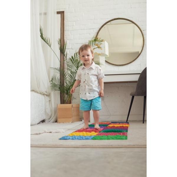 Stavebnice Ortek PUZZLE pro děti 8 ELEMENT skládá z puzzle napodobujícího kamennou stezku různé tvrdosti, suchých fragmentů rostlin a hrotů. Budete překvapeni, kolik zážitků taková cesta poskytuje! 1 BEZPEČNÁ zdravotnický prostředek netoxické lze umýt • protiskluzové • recyklovatelné 2 TERAPIE masáž reflexních bodů na chodidlech prevence plochých nohou zvýšení obranyschopnosti organismu 3 ZÁBAVA forma puzzle vybízí k samostatnému stavění silnic 4 PŘIROZENÝ VÝVOJ smyslové cvičení zlepšení jemné motoriky stimulace zraku pocit nezávislosti Rozměr jednoho modulu 26*26 cm