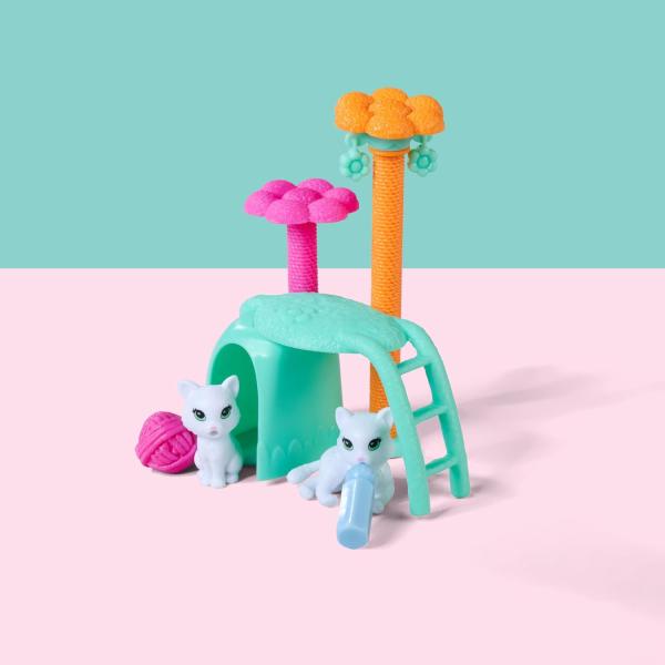 Součástí balení jsou dvě kočičky, škrabadlo a další doplňky.