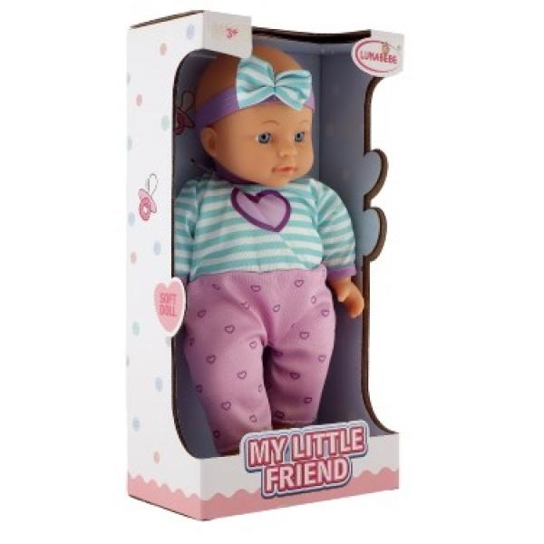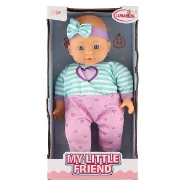 Roztomilá panenka s měkkým tělíčkem v krásném oblečku is čelenkou. Toto miminko udělá určitě radost každé holčičce a stane se tak její nepostradatelnou součástí. Velikost panenky: 30 cm Rozměr balení: 17 x 33 x 10 cm