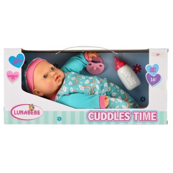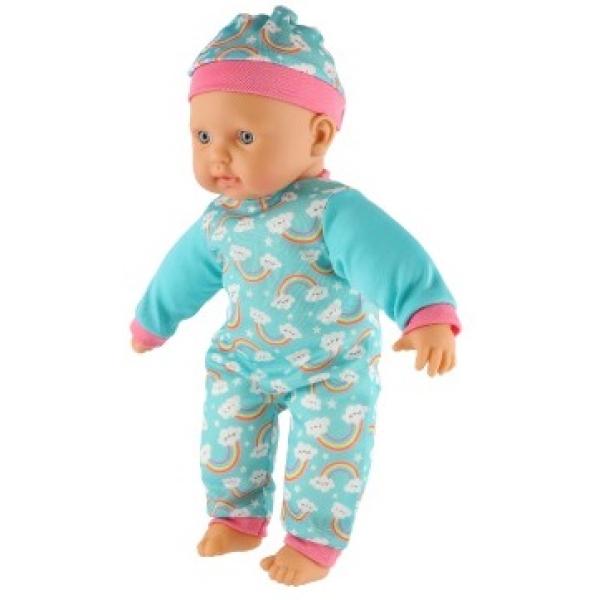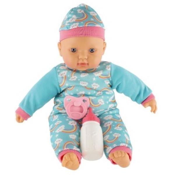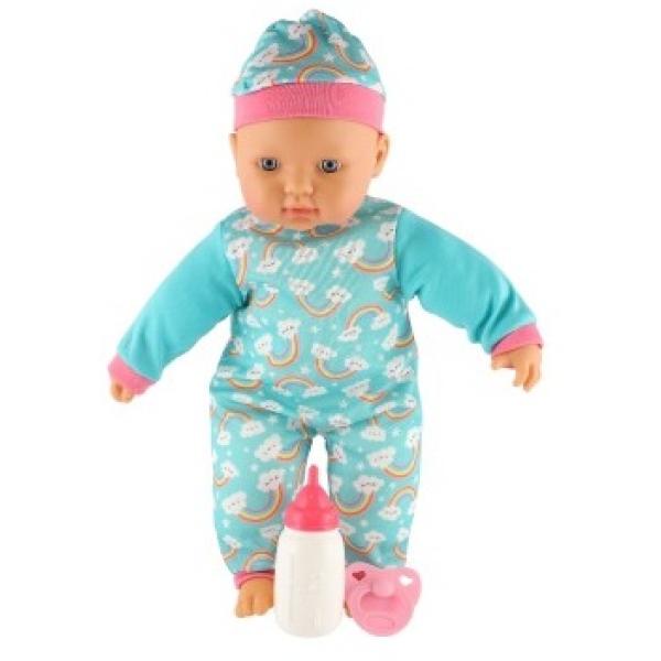 Roztomilá panenka s měkkým tělíčkem v krásném oblečku s duhami. Toto miminko udělá určitě radost každé holčičce a stane se tak její nepostradatelnou součástí. Součástí balení je i lahvička a dudlík, které určitě každá maminka pro své miminko nutně potřebuje. Velikost panenky: 40 cm Rozměr balení: 41 x 19 x 12,5 cm