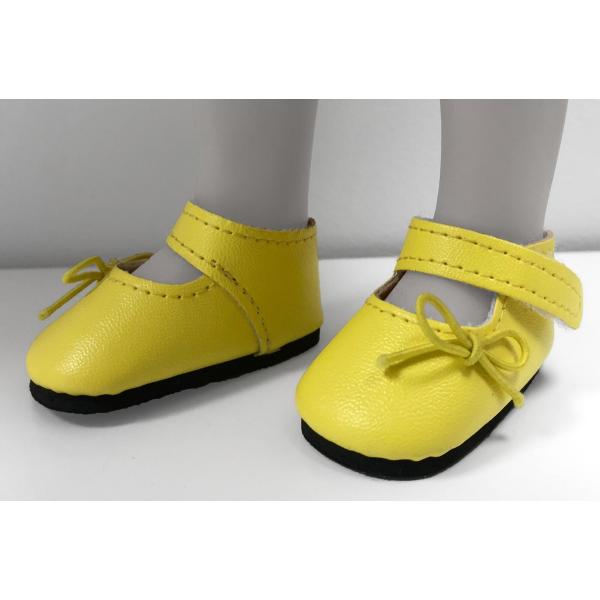 Žluté balerínky s přezkou – roztomilé botičky pro panenku o velikosti 32 cm