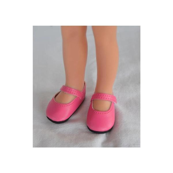 Sytě růžové balerínky s přezkou – roztomilé botičky pro panenku o velikosti 32 cm
