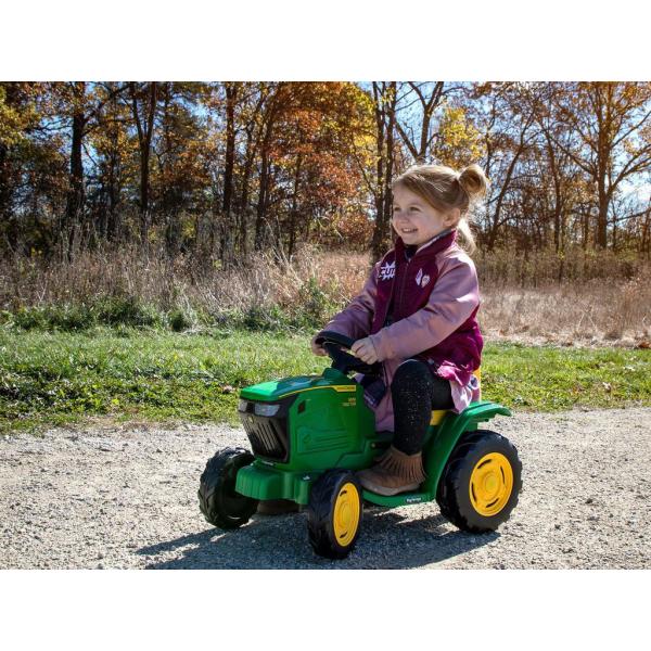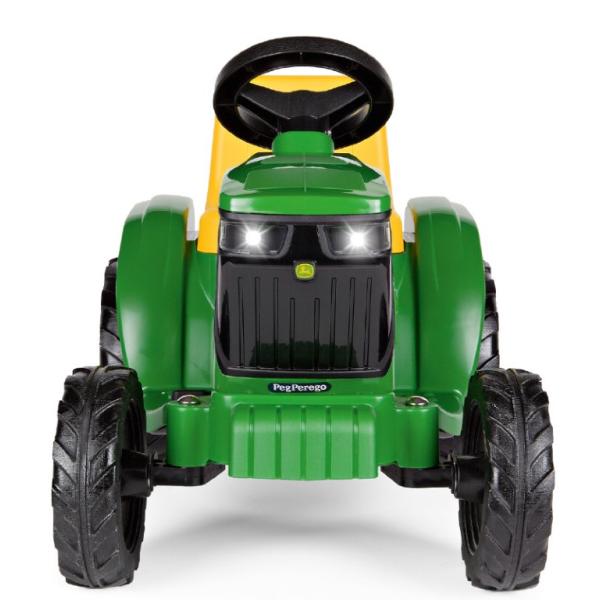 Malý dětský elektrický traktor italské firmy Peg-Pérego vyráběný v licenci John Deere. Je určený pro děti od 1 roku. Traktor má funkční přední světla, startovací tlačítko, klakson, zvuk motoru, kontrolka nabití baterie.