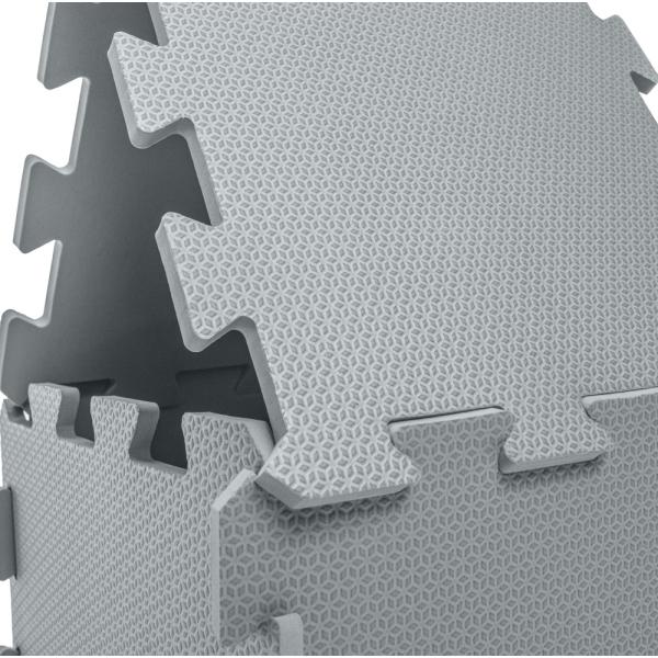 Jednotlivé dlaždice 30 × 30 cm (9 ks) do sebe perfektně zapadají. Podložka je vhodná pro děti od narození, vyrobená z nezávadného a příjemného materiálu.