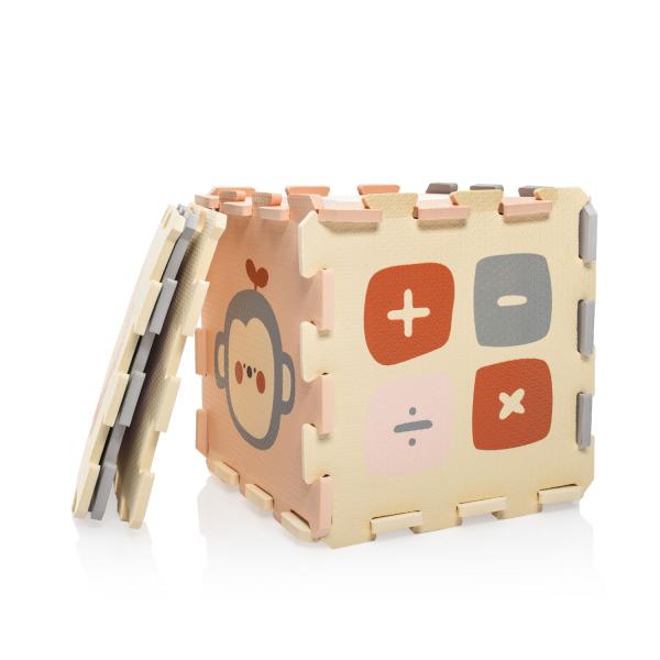 Jednotlivé dlaždice 30 × 30 cm (9 ks) do sebe perfektně zapadají. Podložka je vhodná pro děti od narození, vyrobená z nezávadného a příjemného materiálu.