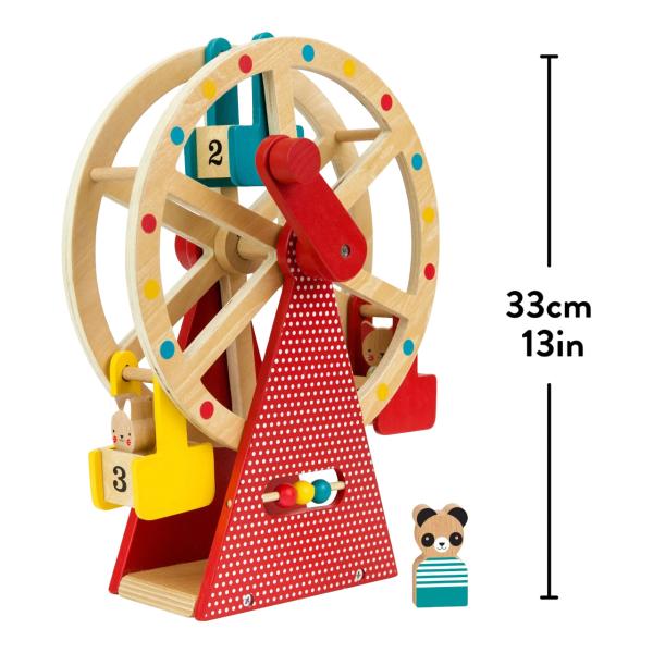 Dřevěné ruské kolo od Petit Collage přináší radost a zábavu! Otočte rukojeť a sledujte, jak se kolo točí, zatímco tři zvířecí kamarádi zažívají dobrodružství.