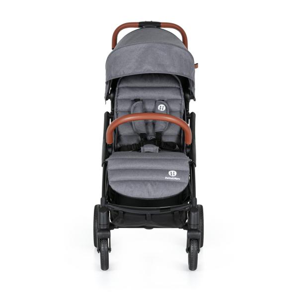 Dítěti poskytuje komfortní sezení díky prostornému a dostatečně širokému sedáku. Zádová opěrka je polohovatelná, díky čemuž se dítě v kočárku pohodlně vyspí. Polohovatelná je i opěrka pro nožičky. Prodloužitelná stříška se štítkem dítěti poskytne soukromí a ochrání ho před prudkým sluncem či nepříznivým počasím. Kontakt s dítětem a jeho kontrolu vám umožní okénko umístěné ve stříšce. Na dotyk příjemné madlo z ekokůže je odnímatelné pro snadné vkládání dítěte do kočárku. Dítě bezpečně připoutáte 5-bodovým bezpečnostním pásem s polstrováním.