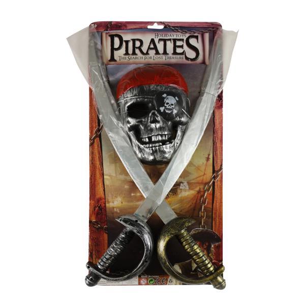 Pirátská souprava se dvěma meči a maskou na obličej promění každé dítě na dobrodruha a dodá kostýmu ten pravý pirátský šmrnc! Ideální pro karnevaly, oslavy i domácí pirátské bitvy.