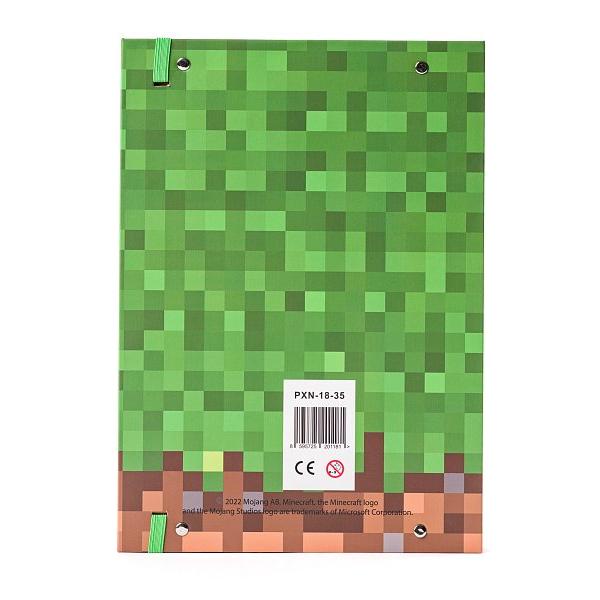 Zeleno-hnědé PIXIE CREW & MINECRAFT kartonové desky velikosti A4 jsou určeny především na sešity, učebnice nebo volné papíry. Desky jsou vyrobeny z tvrdého kartonu, jsou opatřeny jednou zelenou gumičkou, která zabrání samovolnému otevření, na vrchní a spodní části mají klopu, takže z nich nikdy nic nevypadne. Potisk je lesklý. Desky se dají otevřít a zavřít. Do desek můžete vložit 3 sešity velikosti A4.