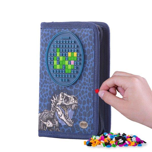 PIXIE CREW Jednopatrový školní pouzdro na tužky: “Toto jednoduché, ale elegantní pouzdro od PIXIE CREW je ideální volbou pro studenty, kteří hledají praktické a přizpůsobitelné řešení pro své psací potřeby. Pouzdro je navrženo tak, aby poskytovalo dostatečný prostor pro uložení všech základních psacích potřeb bez zbytečného přeplnění. Jeho jednopatrová konstrukce usnadňuje organizaci a přístup k potřebám. Díky možnosti vlastního designu pomocí PIXIE CREW pixelů mohou studenti vyjádřit svůj osobní styl a přizpůsobit si pouzdro podle svých představ. Pouzdro je vyrobeno z kvalitních materiálů, díky čemuž je odolné a vhodné na každodenní používání ve škole.“ Na přední straně je umístěný unikátní silikonový PIXIE CREW creative panel TM modré barvy. Kruh má průměr 9 cm a máte k dispozici 86 bodů pro nekonečné množství motivů na každý den díky PIXIES (pixelům), které můžete kdykoliv složit a vyměnit za jiné. K každému pouzdru zdarma přikládáme balíček přibližně 55 ks malých PIXIES (pixelů), 10 malých PIXIES (pixelů) s písmeny, 4 multipixely (pixel o vel. 2×2 body) s obrázky a mini galerii pro inspiraci.