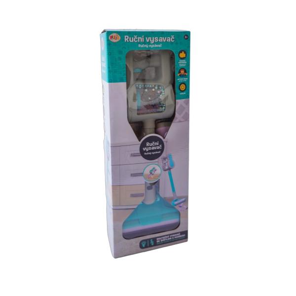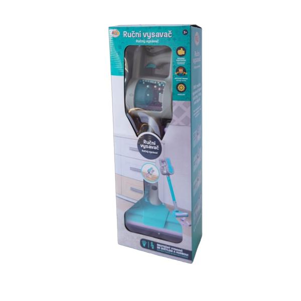 Dětská hračka – Ruční vysavač s vyměnitelnými nástavci. Vysavač je na baterie a vydává zvuk sání. Každá hospodyňka si tento vysavač zamiluje. Je vždy po ruce. Baterie: 2x 1,5. V AA (není součástí balení)Věk: 3+
