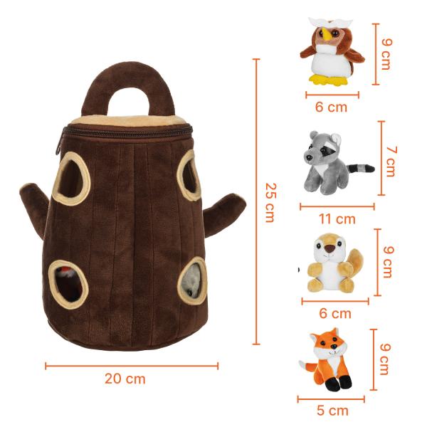 Objevte svět zábavy a učení s touto plyšovou sadou pro děti. Každý tematický domeček ukrývá čtyři milé zvířecí kamarády a slouží jako hrací kufřík i rozvojová hračka, která podporuje představivost a jemnou motoriku.