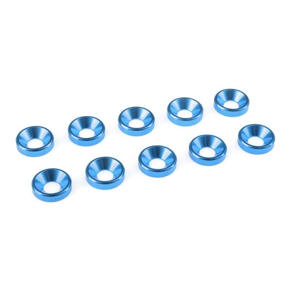 Hliníková podložka pod šroub M4 se zapuštěnou hranou. Modře eloxovaná. Balení obsahuje 10 ks.