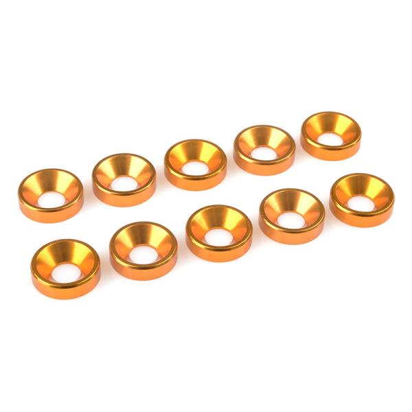 Hliníková podložka pod šroub M5 se zapuštěnou hranou. Zlatě eloxovaná. Balení obsahuje 10 ks.