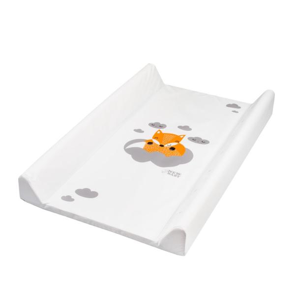 Praktická tvarovaná přebalovací podložka New Baby z nepromokavého, plastového materiálu s obrázkem lišky a obláčků.
