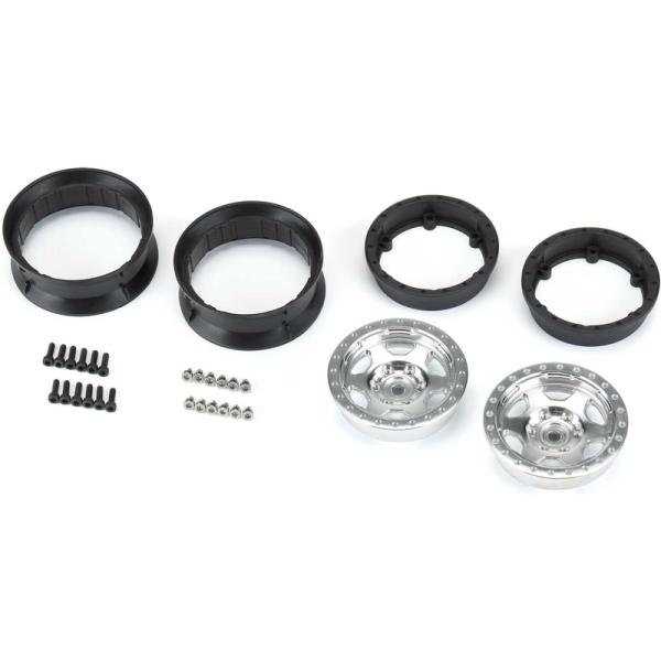 Hliníkové disky Crestline vypadají prostě skvěle! Čelní část disku je hliníková a přesně opracovaná na CNC stroji. Celková šířka a odsazení kol jsou stejné jako u Pro-Line Impulse 1,9″. Totožné je taký jedinečný systém montáže pneumatiky bez lepení. Díky jedinečné třídílné konstrukci jsou jednotlivé části kola sešroubovány z vnitřní strany a montáž a demontáž pneumatik je jednoduchá.
