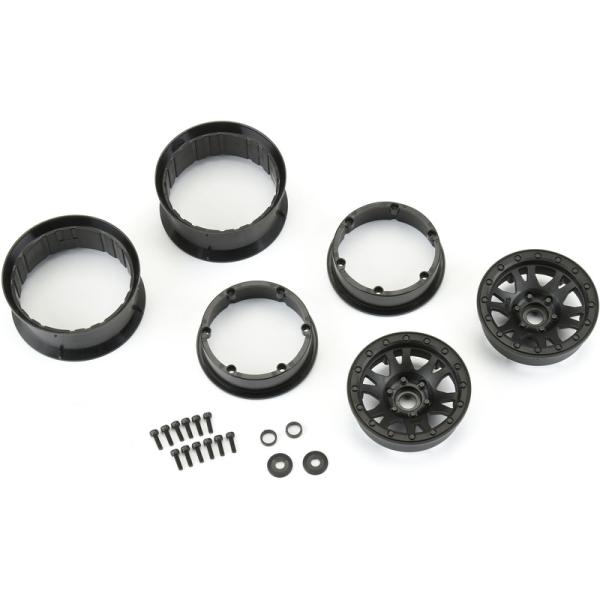 Obsah balenia:Balení obsahuje (2ks) Černé plastové kolo Impulse 2,2″, (2ks) Černé plastové zadní kolo, (2ks) Černý plastový vnitřní kroužek Bead-Lock, (12ks) M2,5 x 8 SHCS, (4ks) Podložky a podložky adaptéru nápravy.
