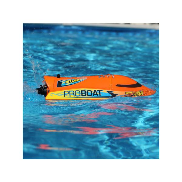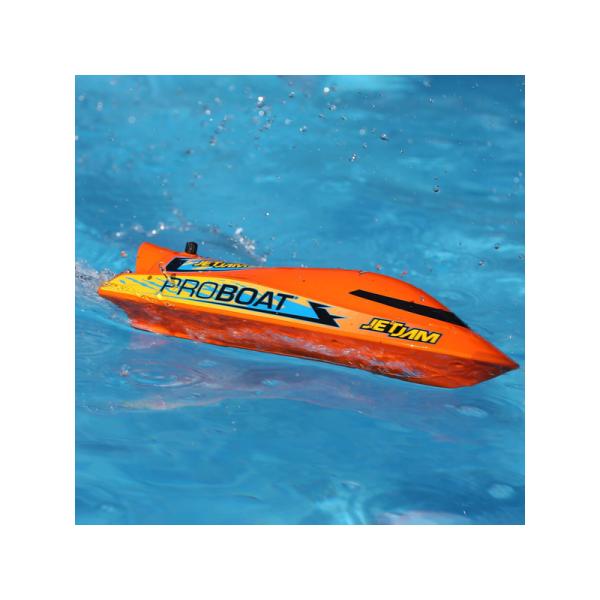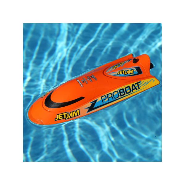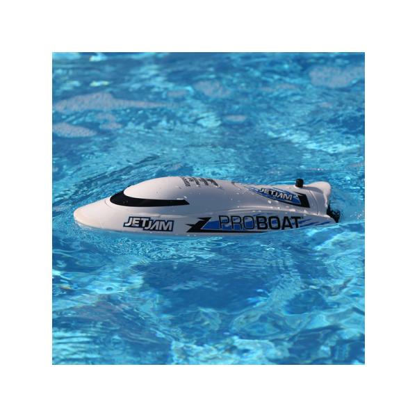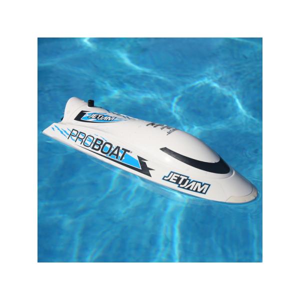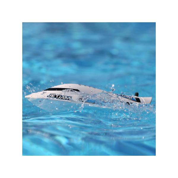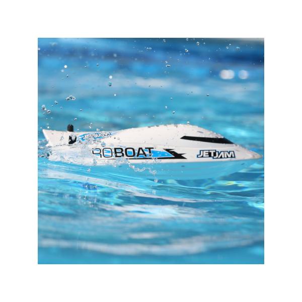 Jet Jam 12″ Pool Racer nemá klasický lodní šroub ani kormidla. Bez odkrytého šroubu je Jet Jam ideální pro děti a párty u bazénu. Pohon s řízením obstará vodní trysková pumpa, která je umístěna v otočném prstenci a je schována uvnitř trupu. Na spodní straně lodi nejsou žádné vyčnívající částí, takže loď přejede bez problémů přes skryté překážky ve vodě aniž by se poškodila.
