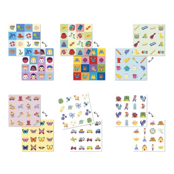 Zábavné pexeso pro děti od 3 let. Hráči mají k dispozici 12 vyměnitelných karet a 192 originálních kreseb na procvičování soustředění a vizuální paměti.