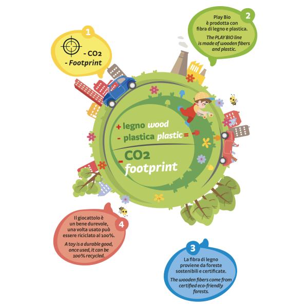 Chunky Peggy je bezpečná, barevná stavebnice s velkými štipci a podložkou ve tvaru květiny. Dítě může štipce zapichovat do otvorů nebo stavět věže. Hračka je vyrobena v Itálii z biokompozitního materiálu ze dřeva a plastu, který je navržen tak, aby snižoval emise CO2 na planetě. Hra podporuje rozvoj jemné motoriky, učí barvy a tvary a napomáhá koordinaci ruky a oka.