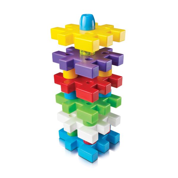 Stavebnice Qubo je ideální první stavebnice pro děti od 1 roku. Velké, barevné dílky se snadno drží a spojují – děti mohou stavět věže, kostky nebo cokoliv, co je napadne. Při hraní si přirozeně rozvíjejí jemnou motoriku, koordinaci oka a ruky, učí se rozlišovat barvy a tvary a zapojují svou fantazii. Hraní podporuje také logické myšlení a trpělivost. Díky měkkému a bezpečnému materiálu se mohou hrát bez obav, ať už doma nebo na cestách. Stavebnice obsahuje celkem 19 dílků.