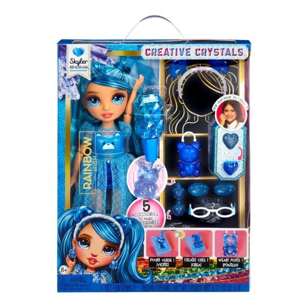 KRIŠŤÁLOVÉ DOPLŇKY MAKE IT SADA: Vaše panenka Rainbow High Creative Crystals přichází se vším, co potřebujete k výrobě 5 vlastních křišťálových módních doplňků pro svou panenku a sebe – včetně pryskyřice, forem a doplňkových nástrojů.5 NA VÝROBU: Vyrobte pro svou panenku sluneční brýle, náušnice, kabelku a křišťálový doplněk čelenky. Také si vytvořte křišťálový prsten pro sebe. Při jejich výrobě postupujte podle pokynů dodaných s vaší panenkou.TAK JEDNODUCHÉ: Nalejte pryskyřici do formy. Postavte se na několik minut na sluneční světlo. Vyklopte krystal z formy. Zaklapněte krystal do příslušenství. Hrajte si s panenkou a všemi krásnými křišťálovými módními doplňky.NOSENÍ: Vy a vaše panenka se k sobě hodíte. Noste křišťálový prsten, který jste si vyrobili pro sebe, současně s tím, jak vaše panenka nosí krásné křišťálové doplňky, které jste pro ni vyrobili.HRAJTE SI: Vytvářejte a hrajte si s novými křišťálovými módními doplňky svých panenek. Děti si zamilují vytváření příběhů v Rainbow World, jak je vidět v online hitu animovaného seriálu.Sparkles IN BLUE: Skyler je oblečena ve své charakteristické modré od hlavy po paty s množstvím třpytek. Má nádherné, detailní rysy ve svých krásně dlouhých modrých vlasech, dlouhé řasy.FLEXIBILNÍ A MOŽNÁ: Protože je Skyler kloubová, snadno se přizpůsobuje a je zábavné si s ní hrát. Její ruce a nohy se ohýbají pro tolik zábavných póz.SOUČÁST: 27 cm módní panenka, outfit pro panenku, křišťálové doplňky Make It kit (pryskyřice, formičky, 5 doplňků na výrobu kabelky, náušnice, sluneční brýle, čelenky a prsten). Dodává se také s brusným papírem a hřebínkem.Získejte je VŠECHNY: Iris (duha), Bella (růžová), Skyler (modrá), Violet (fialová), Amaya (duha).UPOZORNĚNÍ: Produkt obsahuje pryskyřicovou hru. Nevhodné pro děti do 8 let. Vyžaduje se dohled dospělé osoby.