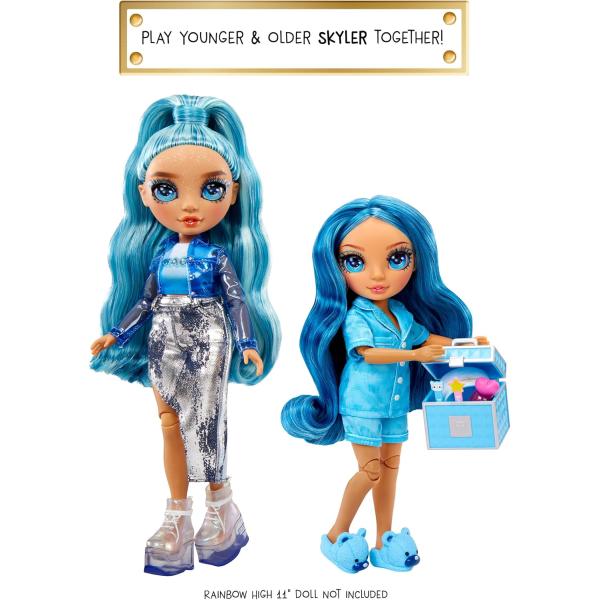 22 cm vysoká, plně kloubová a skládací, můžete předstírat, že je mladší verzí Skyler, nebo si hrát s ní a její 28 cm verzí jako s její starší sestrou