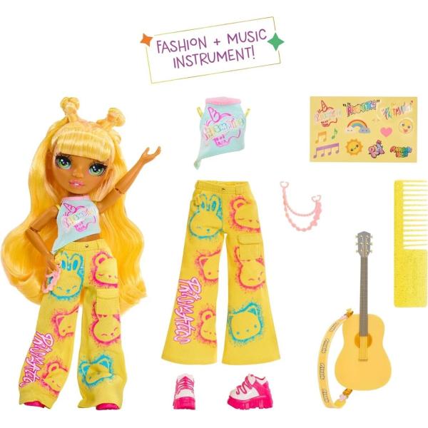 V čase, kdy ještě chodily na druhý stupeň, tvoje oblíbené kamarádky spolu zářily v kapele! Každá přibližně 23 cm vysoká módní panenka přichází s typickým hudebním nástrojem a veselými nálepkami pro osobní dotvoření.