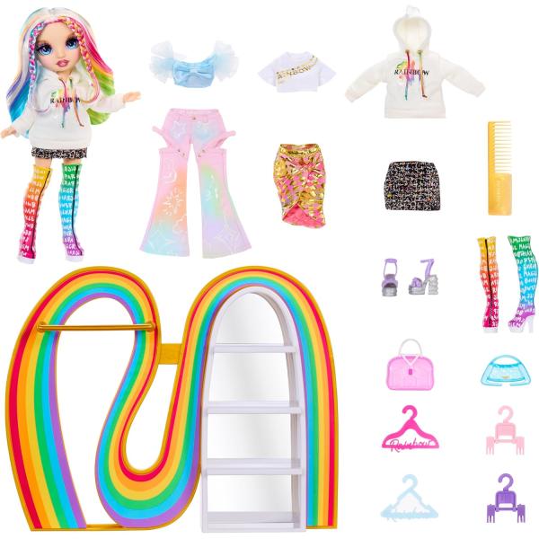 -37%Rozšiřte svou fantazii s novým duhovým šatníkem od Amayi. Dárková sada „všechno v jednom“ obsahuje exkluzivní panenku s duhovými vlasy a botami, další módní doplňky zavěšené na věšáku na oblečení, vícevrstvé police, kabelky a boty. …